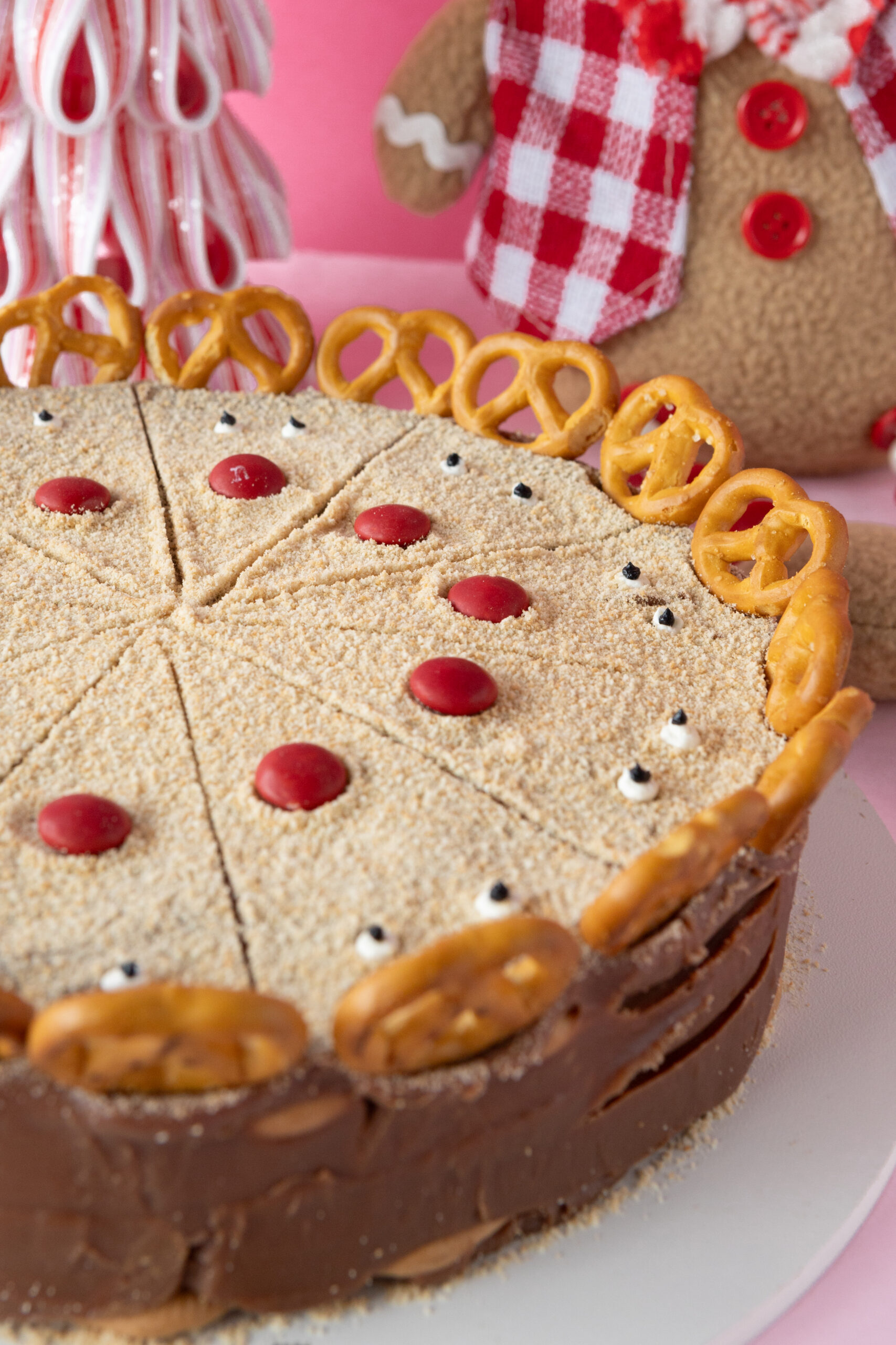 uma releitura da nossa deliciosa e cremosa torta palha. vestida para natal com M&M e pretzel.